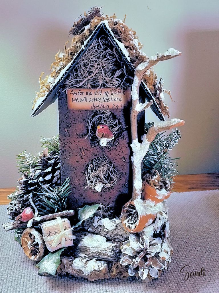 I created many of these brick birdhouses, churches, and schools, and gave them away. I sold a few from a local Christian bookstore, but they were too heavy and awkward to package, so I quit selling them. I kept the one in this post, mostly to see the look on people’s faces when I tell them it was once a dirty red brick.