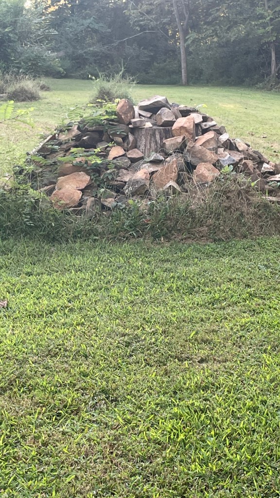 I’ll start with Happy Birthday, but I’m so sorry to hear about your encounter with those yellow jackets. I’m glad you’re feeling better. That is a huge pile of rocks. I have an idea of how much work is involved in moving them, and I wouldn’t want the job. Good luck.