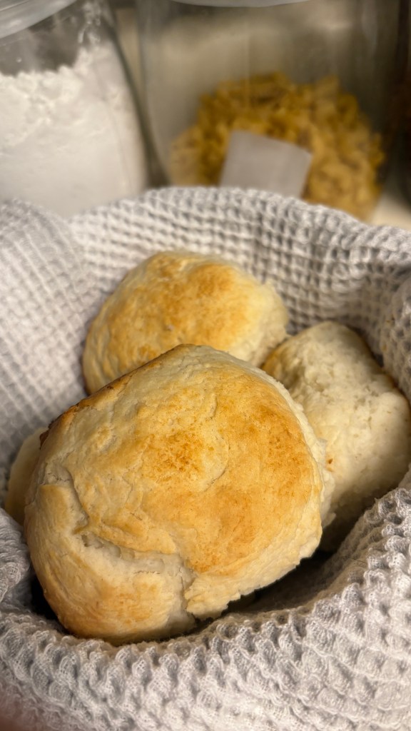 I finally learned how to cook, though, but making biscuits was never my life’s goal. There’s an art to it, and southerners turned it into a masterpiece, at least my mother-in-law did. She’s the one who taught me, but it took a lot of practice. And when I finally learned, I made biscuits every day. I shared them with my neighbors. I shared them with my friends. I wanted to share them with the whole world!